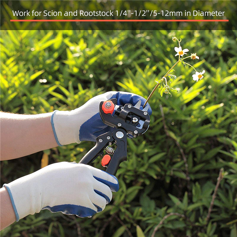 Unlike traditional grafting tools, our tools are made of Made of JAPANESE SK5 high carbon steel double-edged shear blade and high-strength ABS plastic handle, which are pruned and grafted at the same time for durability. The oil on the blade's surface is designed to reduce contact with air and moisture, further protecting the blade from lubrication and rust.