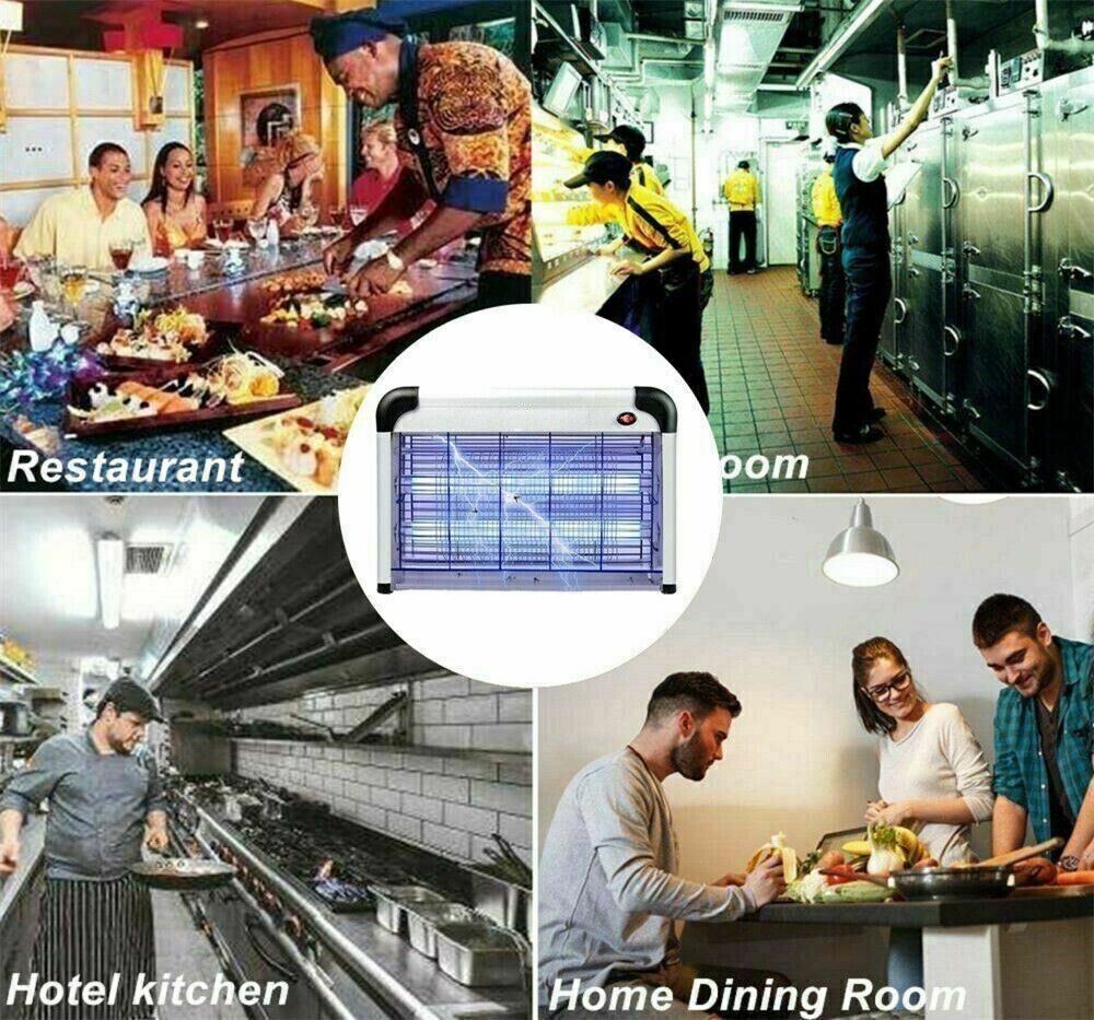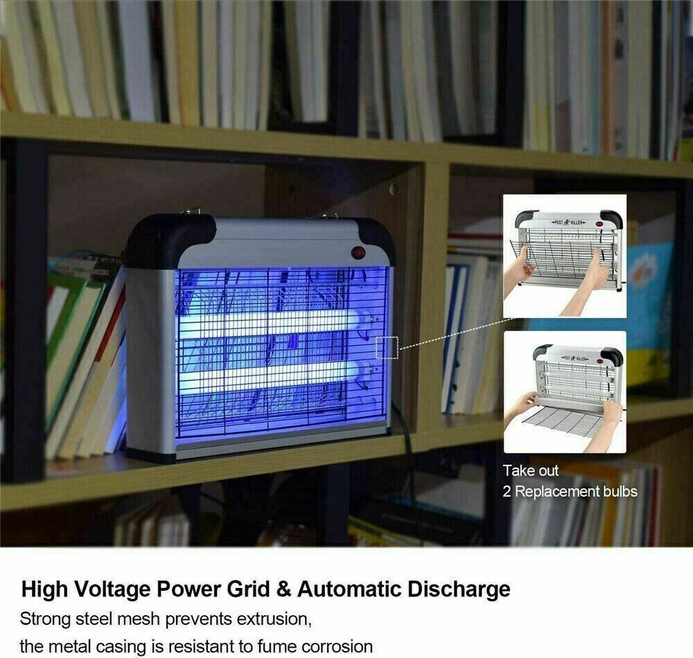 The commercial bug zapper is powered from a strong 2800V indoor transformer and attracts insects with 2 x 10W UV BL Lamps, which will generally explode smaller insects on impact, reducing the need to clean the grid.