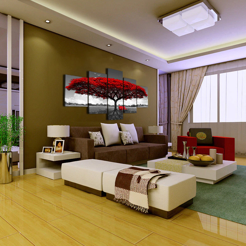 - 🍁 5 Panel Red Tree Wall Art: High Definition modern canvas printing artwork, picture photos printed on high quality canvas material. Vivid color create the feel of the original nature and masterpiece, bring an immersive experience to you.
