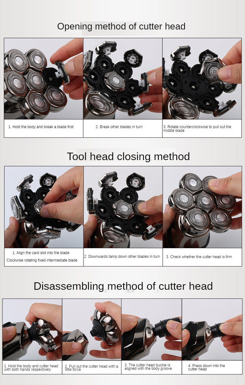 The cutter head is detachable.Pull up the shaving head, you can easily remove it, and then install other heads you need. It is easy to use and wash.