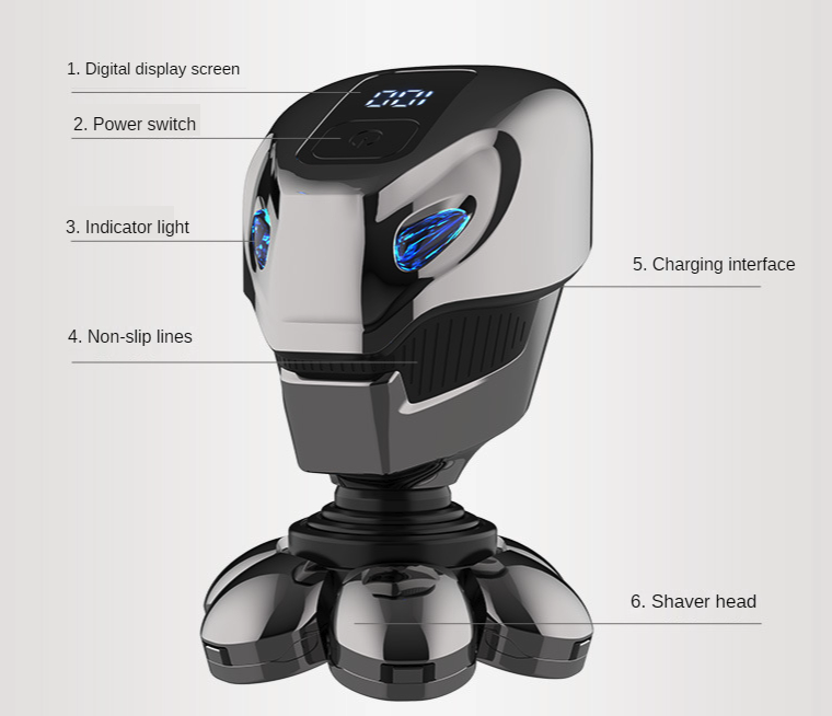 Smart LED display can display the available time of the head shaver, so you can decide when to charge the shaver after shaving. Convenient & intelligent design, it is very suitable for use at home or travel out.