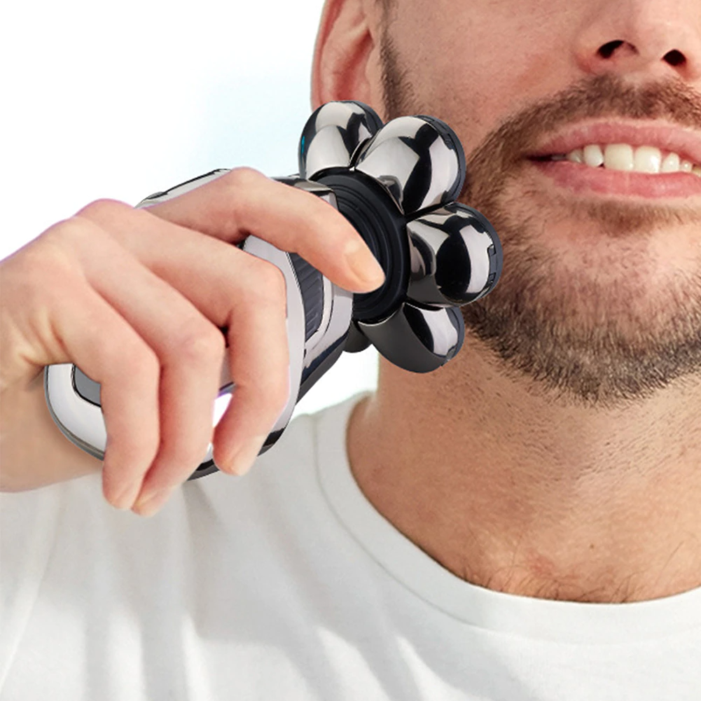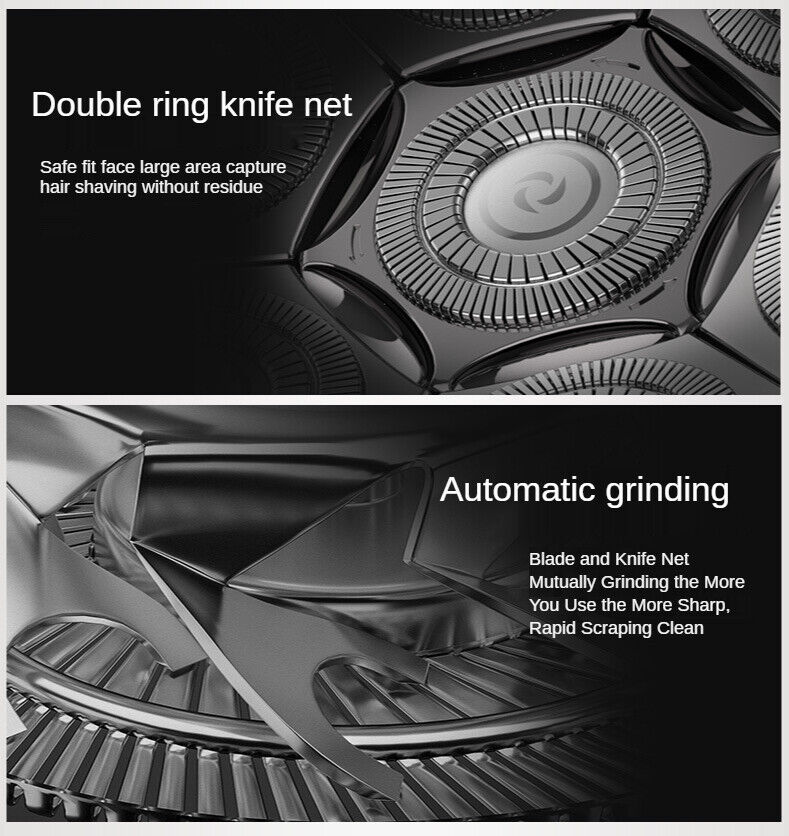 This electric shaver adopts 7D floating shaving head design, which has increased contact area compared to other heads. The center has undergone a broader transformation design. The concave center blade of the razor can increase the curvature of the razor and conform to the skin contour more closely, giving you an efficient and relaxed shaving experience.