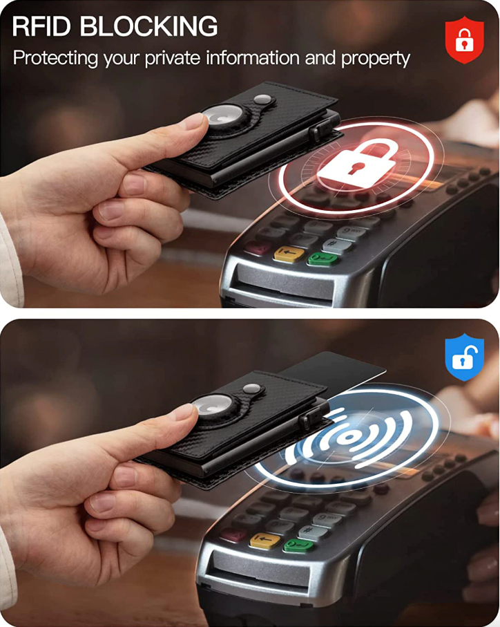 - ⚜️ Safe And Secure: The For air tag holder ensures your peace of mind as you will never lose track of your wallet again; The RFID blocking technology prevents your cards and personal information from skimming attacks, so you can be relaxed and focussed on your work.