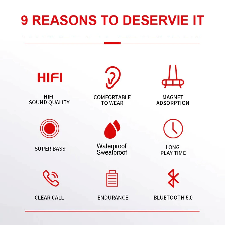 Powerful Audio PerformanceWith innovative acoustic design and newest Bluetooth technology, our around neck headphones offers richer deeper bass and high fidelity, ultra-clear sound, so it always allows you immerse yourself in pleasant music world. Bluetooth headphones with MEMS microphone can filter out the background noise largely and provide you clearer voice for hands-free calls.