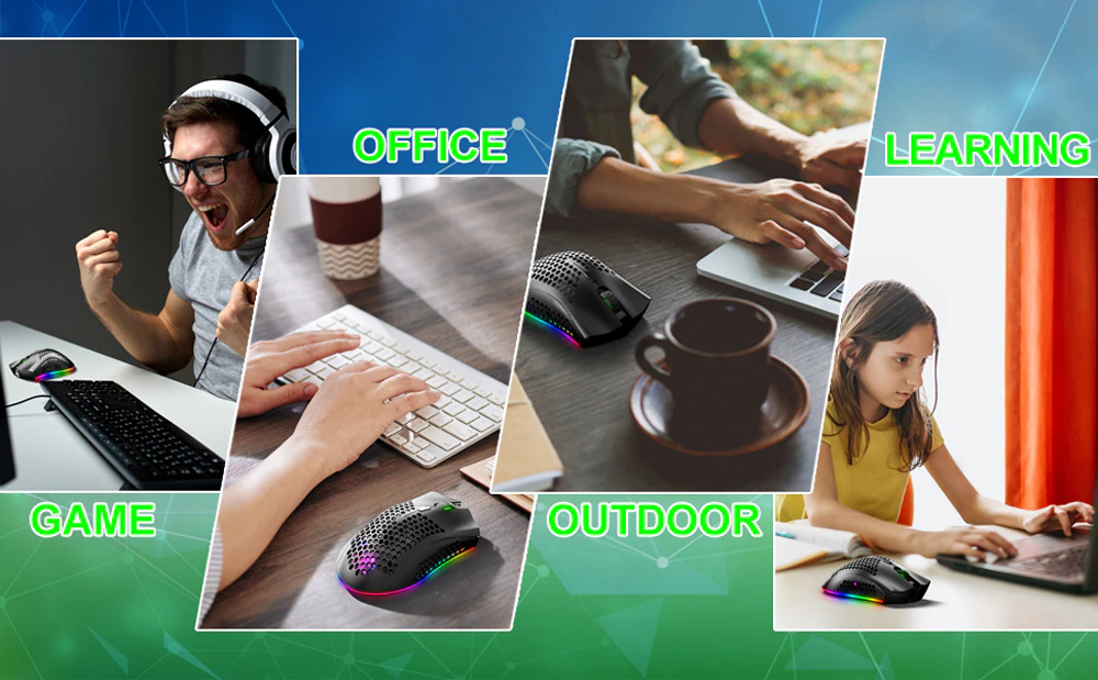 - 🎮【 Light Honeycomb Wireless Gaming Mouse】The well-designed ergonomic hollow perforated shell, brings you the most extreme gaming experience. Reduces weight, improves heat dissipation, they provide ventilation to keep your palms cool and fresh. Assures your long-session gaming without fatigue.