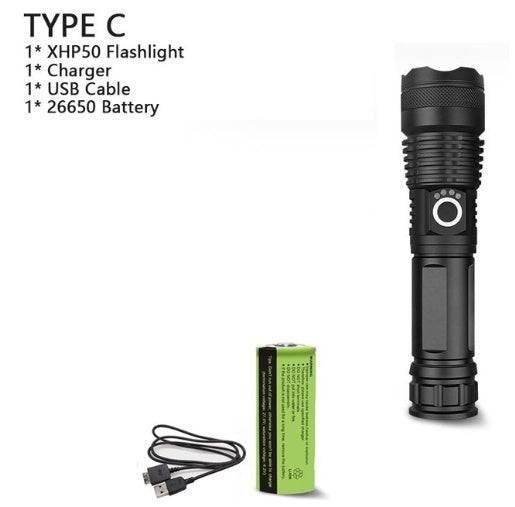 Illuminate your surroundings with the XHP70.2 Powerful USB LED Flashlight, designed to provide exceptional brightness and durability in any environment. Featuring the advanced XHP70.2 LED chip, this flashlight delivers an impressive high lumen output, perfect for outdoor adventures, emergency situations, or everyday use. The USB rechargeable design ensures convenience and cost savings, allowing you to easily charge the flashlight without the need for disposable batteries. With its multiple brightness modes, waterproof construction, and rugged design, the XHP70.2 LED Flashlight is a reliable tool that can withstand tough conditions and provide long-lasting, powerful illumination.